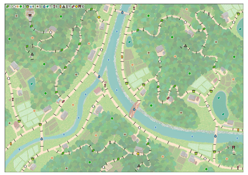 | <最初のみ> スタート地点を決めます。個人ボードの任意の通路マス(アイコンのないマス)にしるし(・や○など)を付けて下さい。(スタート地点を分かりやすくするため) |